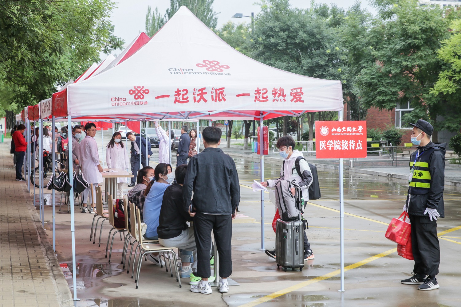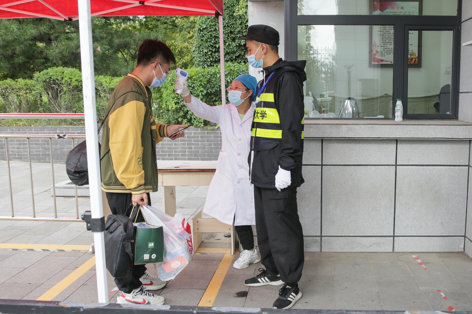 按照学校统一部署,省内2019级、2020级研究生,医学部大二以上本科生,外国语学院2020级本科生等率先返校。当日,保卫、学工、后勤、校医院、学院……,各相关部门和单位的工作人员早早坚守在各自的工作岗位,热情迎接每一位返校同学。