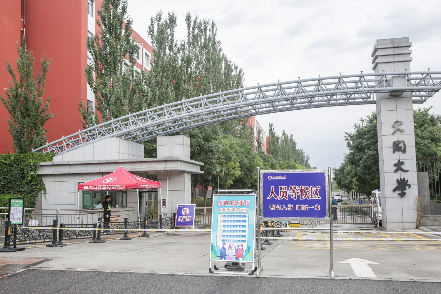 在校门口,同学们在健康码核验一体机前接受“双码检测”,凭借学生证、身份证及48小时内核酸检测阴性证明进入校园,然后去往设置在显眼位置的学院接待点,查验车票信息、行程码、健康码,完成信息登记等后,有序进入宿舍。