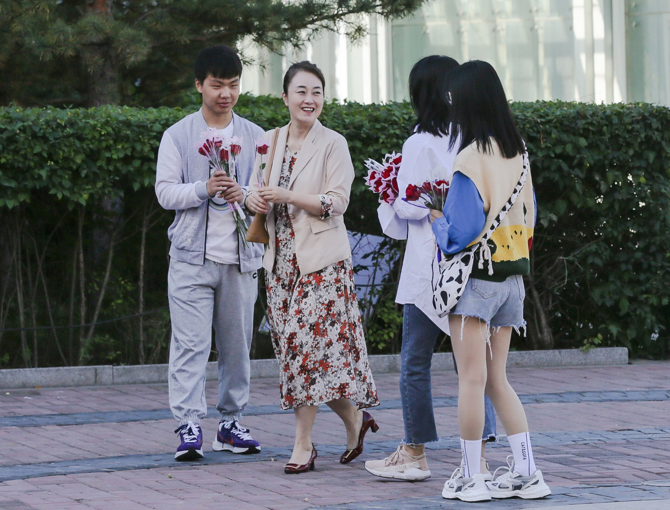 鲜花献恩师,珍爱师生情。清晨的校园里、走廊中、教室内,是另一番动人的情景:“老师,您辛苦了,节日快乐!”“谢谢你,同学!”问候声此起彼伏,同学们把一支支娇艳欲滴的康乃馨送给亲爱的老师。眼中有光,心中有爱,此时此刻,师生们的笑容比手中的鲜花还要美。