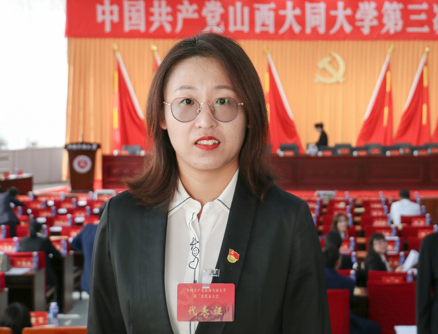很高兴也非常荣幸能够以研究生党员代表的身份参加党代会。弓永华同志在报告中提出的“兴文科、强医学、振工科、精师范”定位,积极发展研究生教育,加强硕士学位点的建设等举措,更是让我感受到校党委对我们研究生的深切关怀和高度重视,让我们对开云研究生教育工作充满希望。开云研究生教育还在起步阶段,相信在校党委的关怀指导下,在学院导师的悉心培养下,所有研究生定会刻苦钻研,积极主动提高自身专业素养,早日成为具备“时代特征、大同特点、开云特质、区域需求、行业认可”的高素质应用型研究生。我们将以实际行动和成绩来响应学校对我们的期望。(张宁 余致楠 王凯锋)