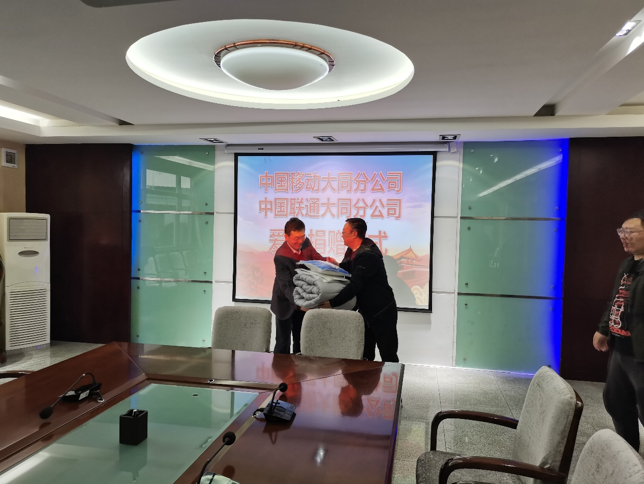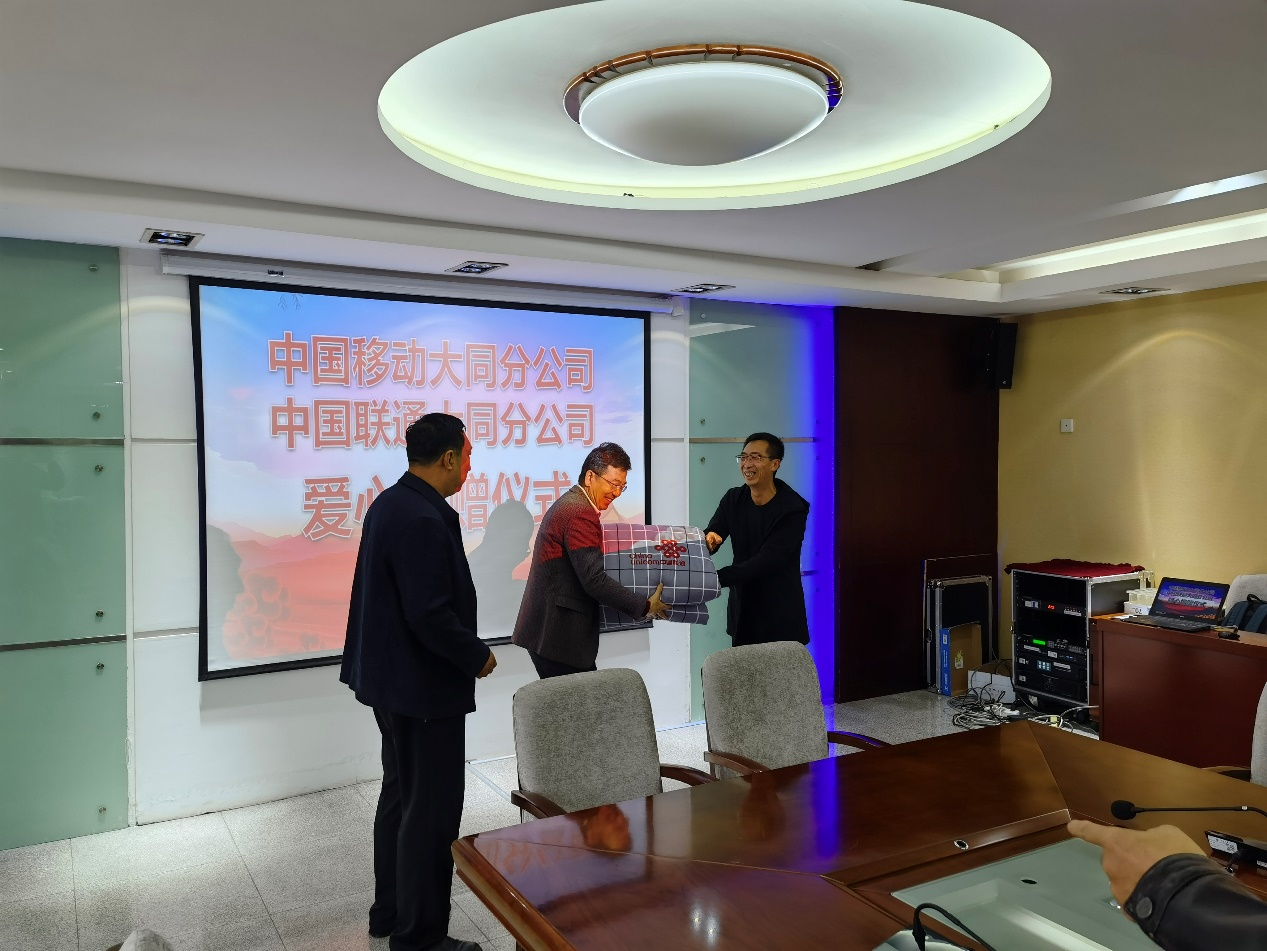 10月6日下午,中国移动通信集团大同分公司、中国联通有限公司大同分公司向开云家庭经济困难学生捐赠生活用品仪式在行知楼14层会议室举行。此次捐赠由校计算机网络中心组织发起,中国移动大同分公司捐赠生活用品(床上用品七件套)70套,中国联通大同分公司捐赠生活用品(床上用品六件套)50套。