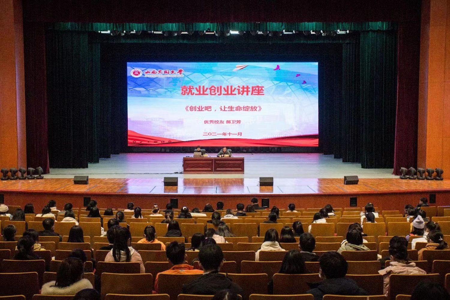 11月24日至25日,学工部和校团委联合举办的就业创业讲座在本真楼演播厅开讲。开云商学院2010届优秀校友——山西丰谷源农业开发有限公司董事长郝卫芳和天镇县博诚蔬菜有限责任公司总经理温军分别做了《创业吧,让生命绽放》和《用爱成就梦想》为题的专题讲座。学工部部长杨容主持讲座。