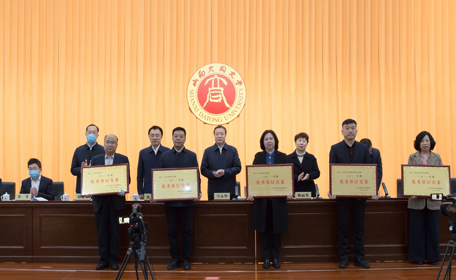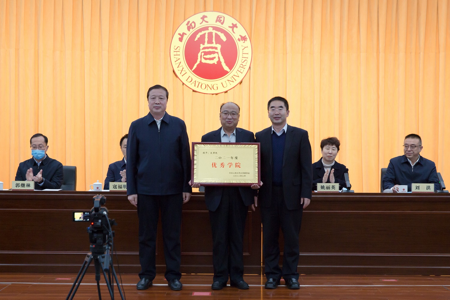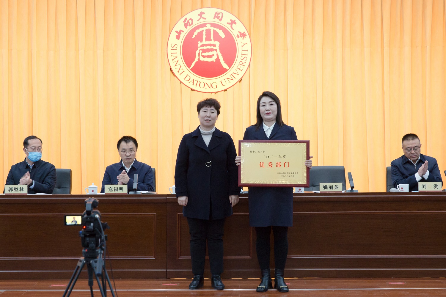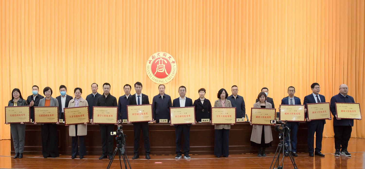 校党委副书记刘洪宣读关于表彰2021年“年度工作优秀单位”和“年度优秀干部”的决定。文学院等5个基层党委获评优秀党委,马克思主义学院等11个单位获评优秀学院(部门),医学院荣获“医学认证贡献奖”荣誉,文学院等19个单位分别荣获党建思政、人才引进、教学工作、科学研究、学生工作、就业工作、校园文化、安全稳定、疫情防控、工作进步单项奖,王娟等27名中层处级干部获评“年度优秀干部”。