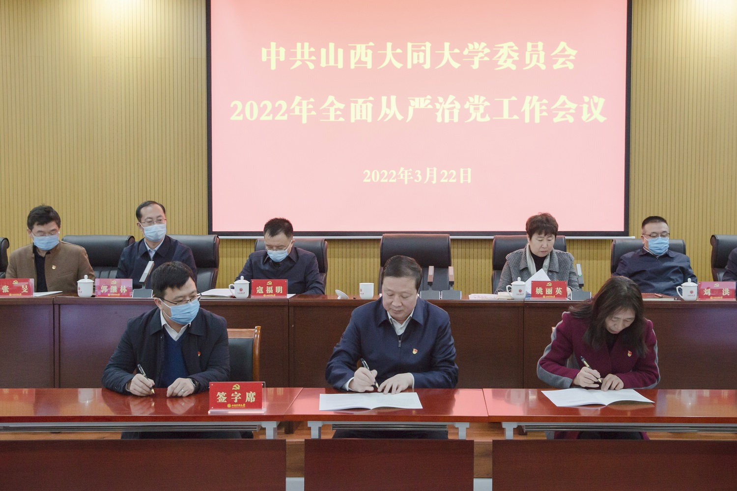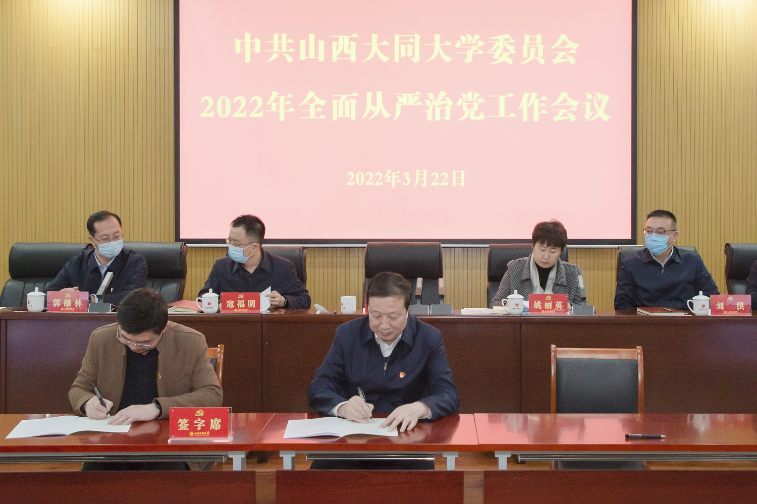弓永华与校领导班子成员,学院、部门负责人签署《2022年度全面从严治党主体责任书》。