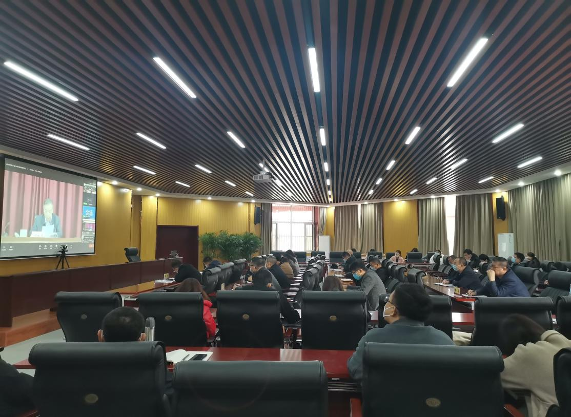 党委副书记寇福明,学工部部长杨容,各学院党委副书记、就业联系人,学工部就业指导中心工作人员在文德楼会议室收看了视频会议。
