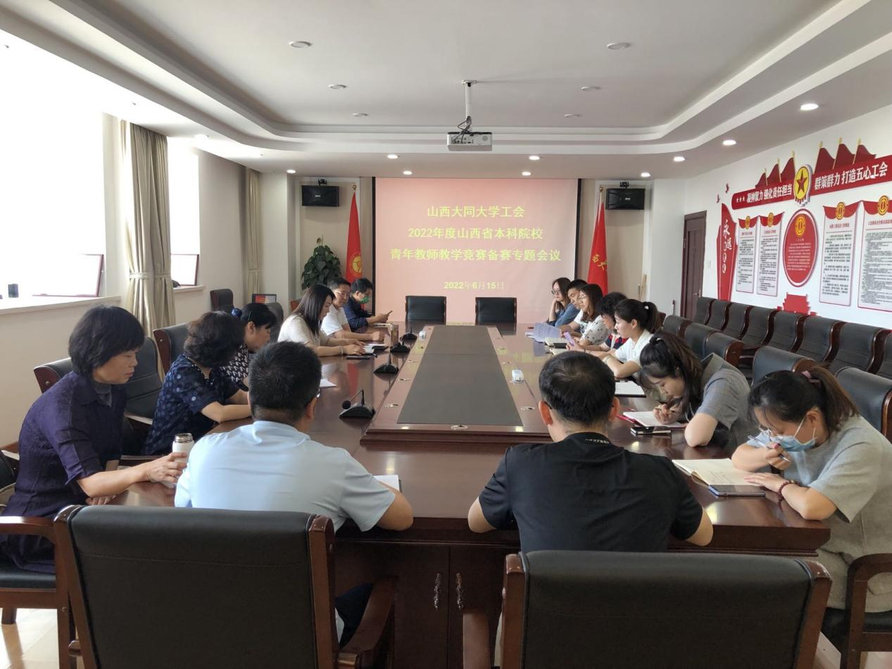 6月15日上午,校工会2022年度山西省本科院校青年教师教学竞赛备赛专题会议在行知楼14层工会会议室举行,校工会主席侯桂兰、往届山西省青教赛获奖选手、竞赛评委、本届省青教赛5名备赛选手及校工会全体工作人员参加了会议,会议由侯桂兰主持。