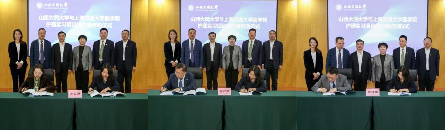 护理学院院长段爱旭受学校委托分别与上海交通大学医学院附属瑞金医院副院长胡伟国、附属仁济医院副院长薛蔚、附属第九人民医院副院长王艳签署了护理专业实习协议书。