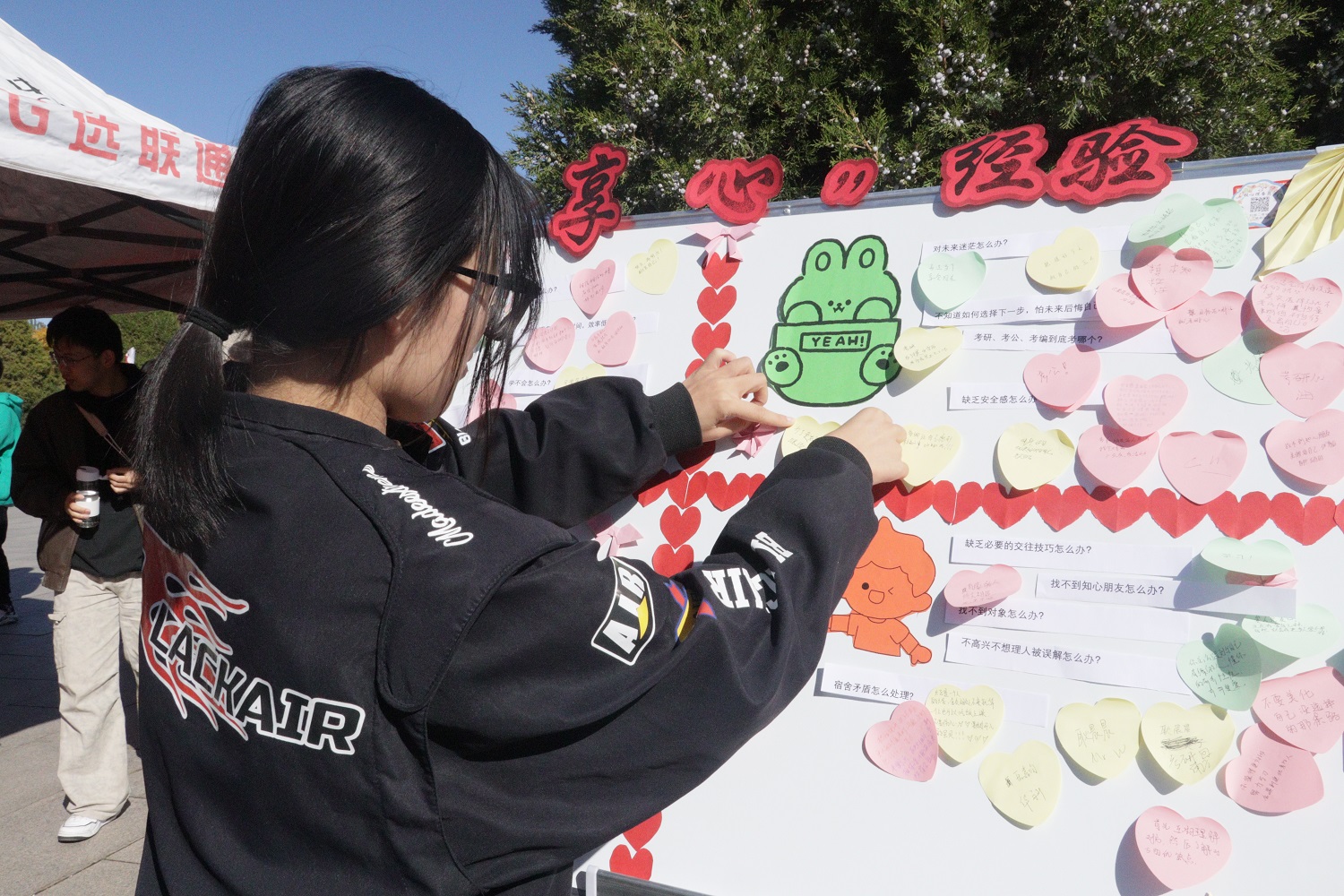 围绕“共建共治共享同心健心安心”主题,本次现场咨询活动共设立“共建‘心’世界”(沙盘体验区)、“治愈‘心’历程”(手工疗愈区)、“分享‘心’经验”(经验分享区)、“绘制‘心’开云”(绘画制作区)、“勇攀‘心’高峰”(运动活动区)、“焕发‘心’力量”(心理咨询区)等六个区域。师生共同体验了互动游戏,14位专兼职心理咨询师共接受学生咨询120余人次,发放心理健康宣传材料1300余份。大家在过程中体验,在行动中感悟,进一步加强对自我心理状态的关注,提升自身幸福感与满意度,增强心理健康意识。(来源:学生工作部 责编:赵鑫)