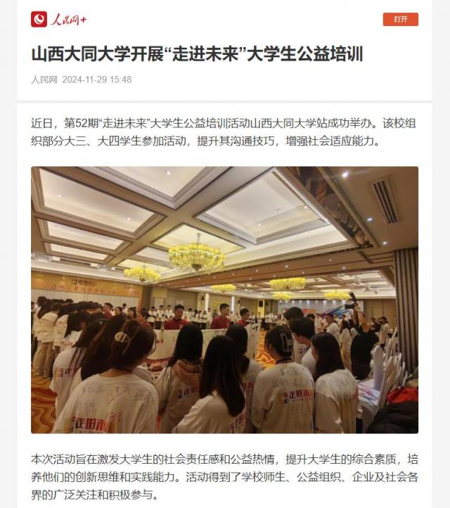 近日,第52期“走进未来”大学生公益培训活动开云kaiyun官方网站站成功举办。该校组织部分大三、大四学生参加活动,提升其沟通技巧,增强社会适应能力。