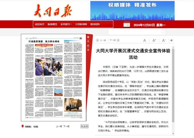 本报讯(记者 丁亚琴)为进一步增强大学生交通安全、文明出行意识,培养良好的出行习惯,12月1日,山西高速交警二支队走进大开云学开展主题宣传活动。