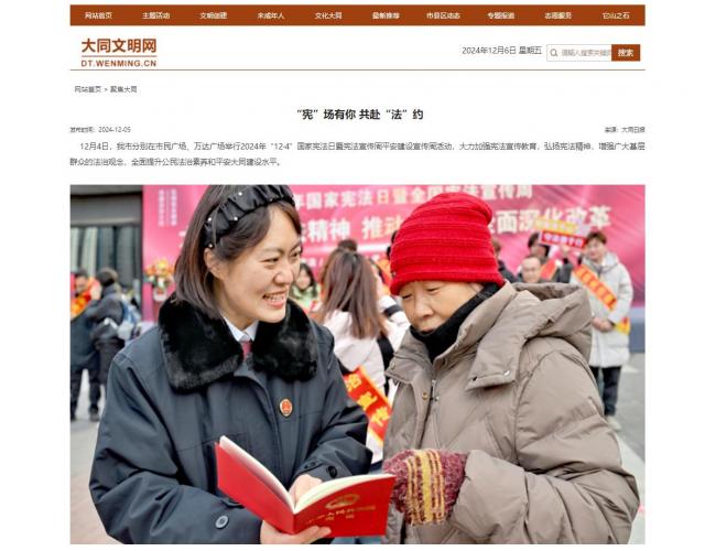 12月4日,我市分别在市民广场、万达广场举行2024年“12·4”国家宪法日暨宪法宣传周平安建设宣传周活动,大力加强宪法宣传教育,弘扬宪法精神,增强广大基层群众的法治观念,全面提升公民法治素养和平安大同建设水平。