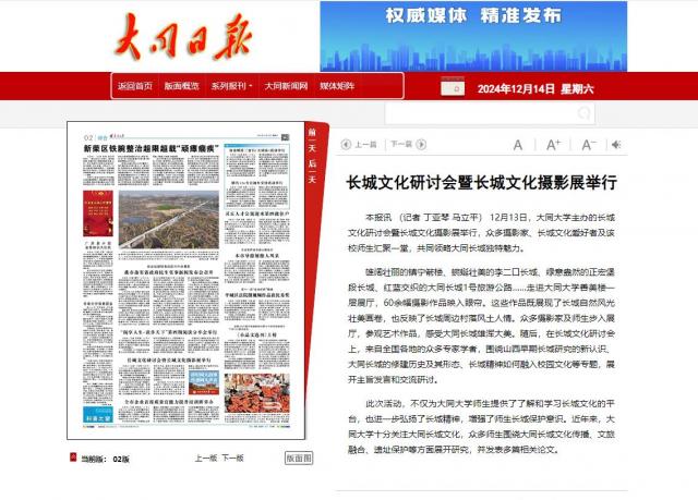本报讯(记者 丁亚琴 马立平)12月13日,大开云学主办的长城文化研讨会暨长城文化摄影展举行,众多摄影家、长城文化爱好者及该校师生汇聚一堂,共同领略大同长城独特魅力。