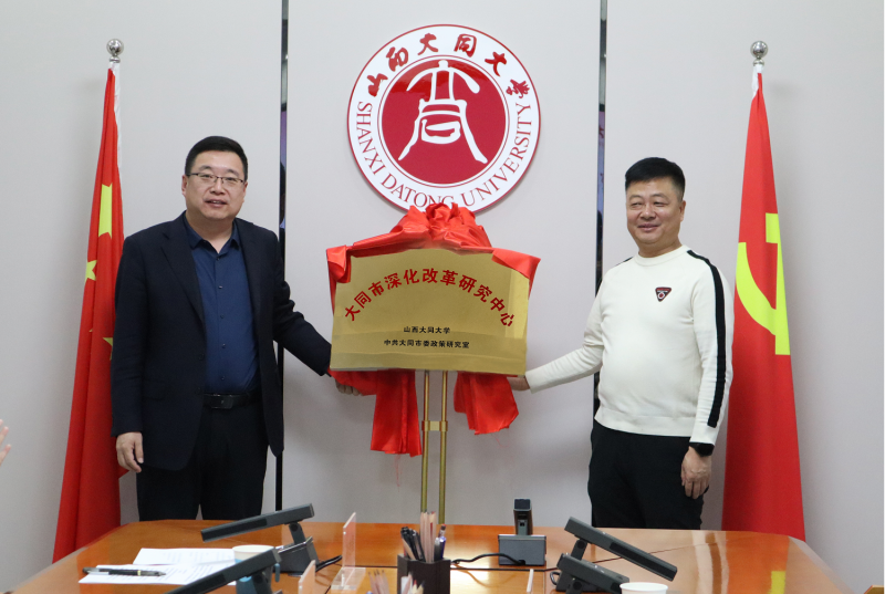 12月12日,大同市深化改革研究中心在开云行知楼举行揭牌仪式。校党委常委、副校长史水鸿,中共大同市委政策研究室副主任常占库出席。